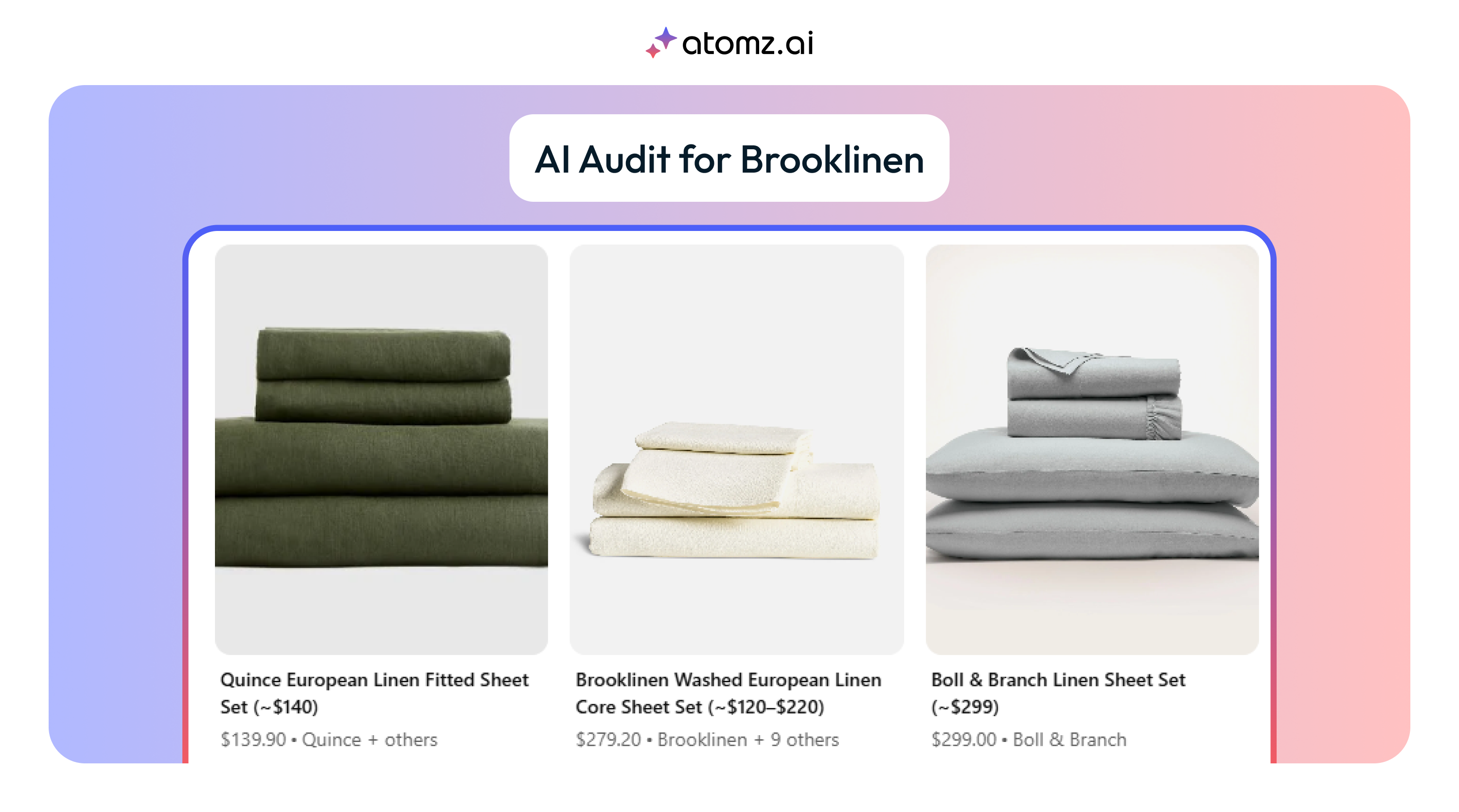 Price Point Positioning: At $135-$279 price points, Brooklinen sits between budget options ($92-$139) and ultra-luxury ($315-$500), but this positioning may limit discovery in specific price-focused searches.